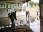 una nostra squadra di volontari dà una mano per spalare fango in un frantoio invaso dopo una copiosa caduta di pioggia.